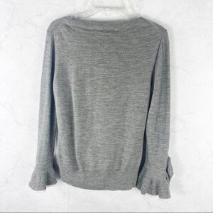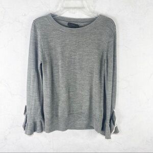 J. Crew Classic Gray Merino Wool Crewneck Sweater. Lightweight Long Ruffle Bell Sleeves. Round Neckline. Ribbed Cuffs & Hem. Soft Material. Cute & Comfy. Great Condition. No Stains or Rips.