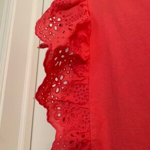 Bright pink tank from J Crew with ruffle eyelet detail. Worn once. In perfect condition. No signs of wear. Size XS.
