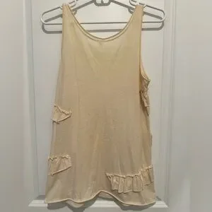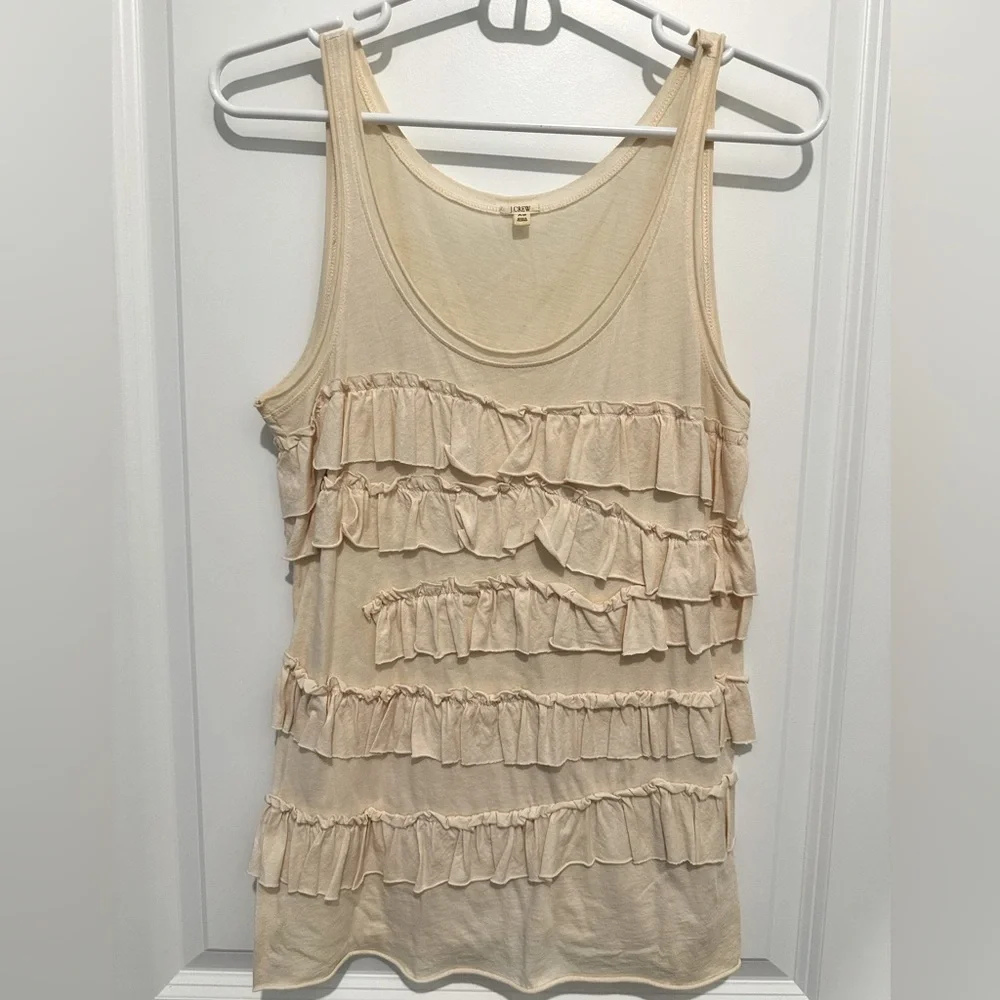 J. Crew Ruffle Tank. Fits more like a Small. Lightweight and comfy. Super cute with white pants.
