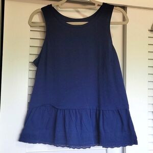 Gently used condition vintage Women's Large Grey slub material tee/tank. Cute ruffle details at shoulder. Dark grey tee material. Cute for a casual day out and about with a cardigan or utility jacket