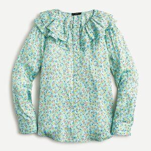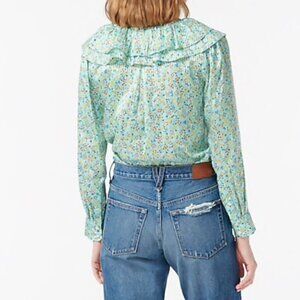 J Crew Ruffle Top Floral Field Day Print Long Sleeve Blouse Peasant Cottage