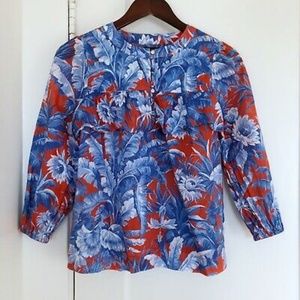 J. Crew Women's Long-sleeve Ruffle Top Ratti Rio Floral Blue Size XS Petite EUC