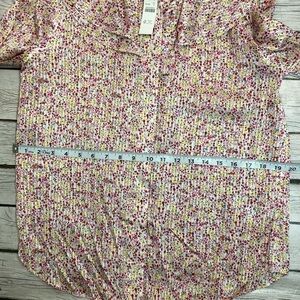 J.Crew ruffly floral top with subtle metallic stripes for an added bit of shine.