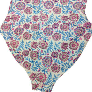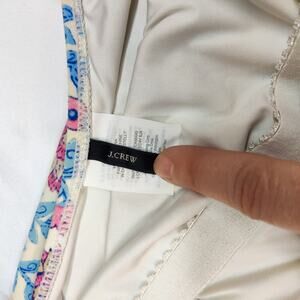J. Crew Ruffle V Neck one-piece bathing suit in pink and blue floral vine block print. Women's size 12.