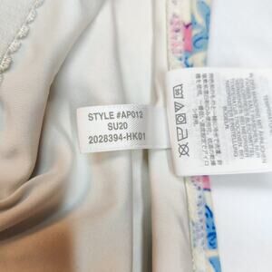 J. Crew Ruffle V Neck One Piece Swimsuit Floral Vine Block Print Sz 12 Pink Blue