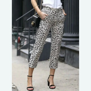 J. Crew Ruffle Waist Linen Blend Leopard Pants in size 6. Great preowned condition. First photo is stock photo. Two front pockets, zipper, button and bar and tab front closure, elastic back and side waistband. Please see photos for approximate measurements and details. Item may show difference in color based upon photography and perception. Photos are part of the description, as everyone’s level of condition may vary. From smoke free and pet free home. All packages are shipped the same or next business day.