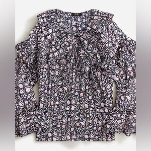 J Crew Ruffle crinkle chiffon top in floral flourish BL047