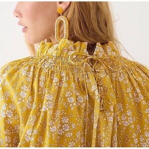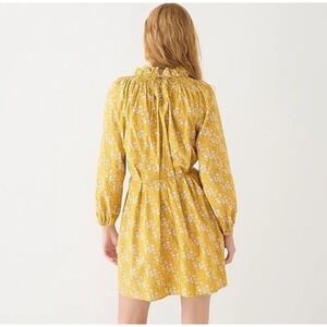 J Crew Ruffle neck Puff Sleeve Dress Liberty Organic Cotton Yellow Womens Medium