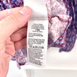 This is a gently used J Crew Ruffle-Collar Button-Up Shirt in Liberty Toutouayette Fabric Size 2. In excellent condition. Minimal wear. See all pics for condition.