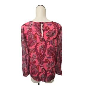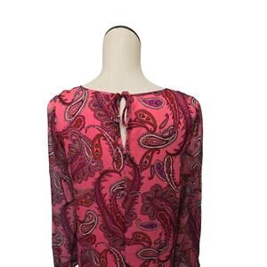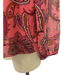 J. Crew Ruffle-Front Silk Chiffon Top Vibrant Paisley Pink Womens Size 6