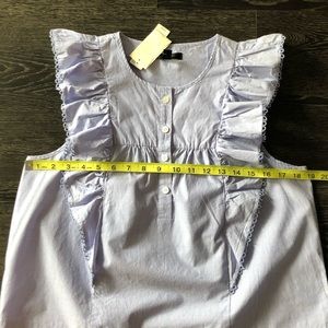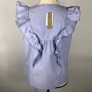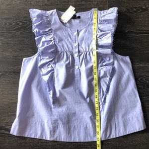 Brand New With Tag J. Crew Blue Ruffle-Front Top Size 6. Please see photos for measurements and materials.