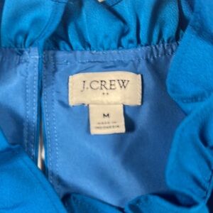 This stylish sleeveless blouse by J. Crew showcases a vibrant blue color and elegant ruffled accents. Crafted from smooth fabric, it offers a chic and comfortable fit, perfect for any occasion.