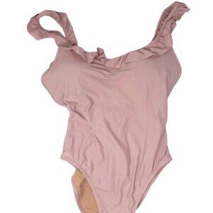 J Crew Mineral Pink Ruffled Scoopback One piece Swimsuit Size 8 Size 10 NWT