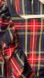 This elegant J. Crew blouse showcases a bold black and red plaid pattern, accentuated by a stylish diagonal ruffle. The sleeveless design and structured fabric provide a chic and comfortable fit, perfect for any occasion.