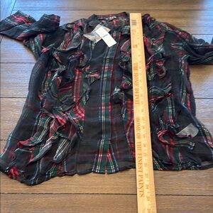 J. Crew Ruffle-front top in tartan crinkle cupro Size 0