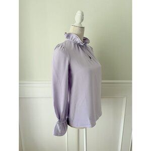 Feminine, ruffle neck top by J. Crew. New with tags. Size XS. Soft lavender color. Long sleeves. Bust 16.5" across. Shoulder to hem 24"