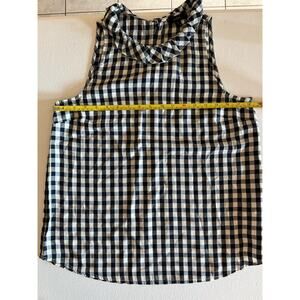J. Crew Ruffleneck Top on Drapery Gingham Size Small Navy White