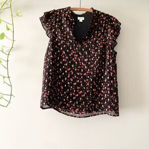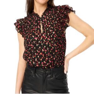 J Crew Ruffleneck‎ flutter-sleeve top S