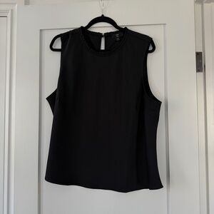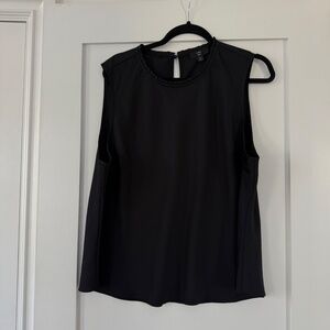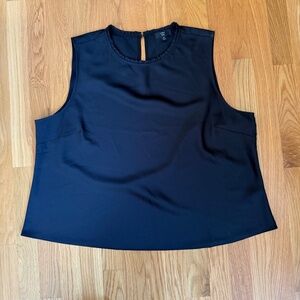 A pretty shell in sleek satin-crepe (translation: sheen on the outside, texture on the inside) is made that much better by the addition of a tiny ruffle detail at the neckline.