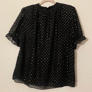 🦋J. Crew Ruffleneck top with foil clip dot with short sleeves, small