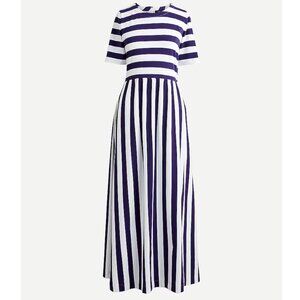 J. Crew Rugby Stripe Maxi Dress Size 12 Fit & Flare Empire waist Navy Purple