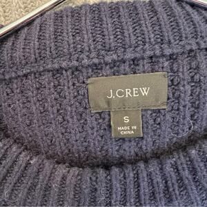 J Crew Rugged Merino Wool Mixed-Knit Crewneck Sweater cable knit gray navy blue J7717, Size S. Good used condition. Merino wool blend. First 2 photos are stock photos to show fit and detail only.