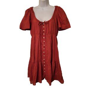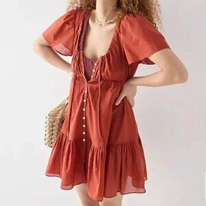 J Crew Rust Red Cotton Voile Tiered Button Down Front Dress S Boho Chic Beach Su