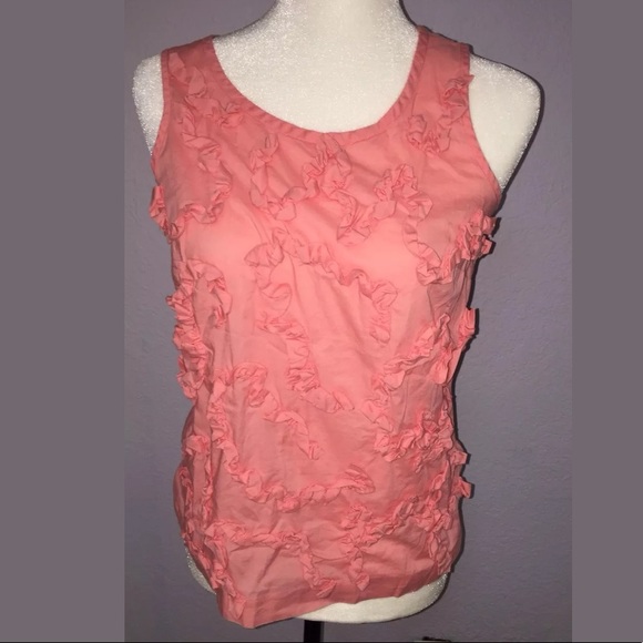 Add a pop of color to your wardrobe with this chic J.Crew Ruthie Ruffle Shell Sleeveless Blouse. Featuring a stylish ruffle design and a flattering fit, this peach coral blouse is perfect for both casual and dressy occasions. Originally retailed at $70, now available at a great price!