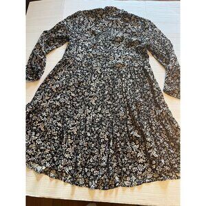 J. Crew S Black & cream Floral Shirt Dress tossed bouquet print pockets