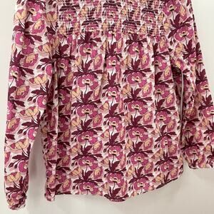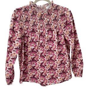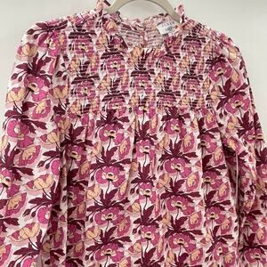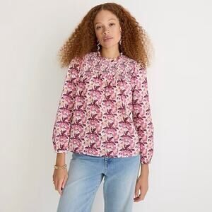 J. Crew S Smocked Button Back Top Liberty Butterfield Poppy Organic Cotton BL654