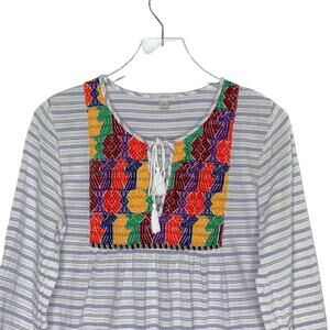 J Crew S Womens Embroidered Striped Tunic Top Dress Breathable 100% Cotton