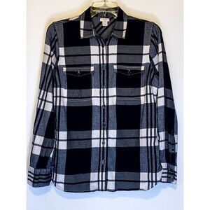 J.Crew Plaid Flannel Shirt Mens SM Black White Button Down Long Sleeve Casual