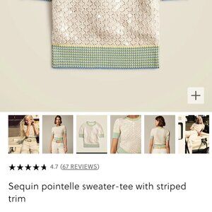 J. Crew S/S Clear Sequin Pointelle Sweater Tee with Striped Trim Size XXS NWT
