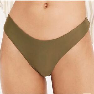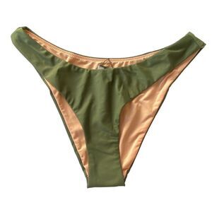 J Crew Safari Green Curved Waist Cheeky Bikini Bottom NWT is new with tags & hygienic liner in place and is available in sizes S & M