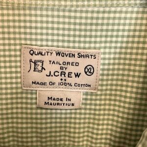 J. Crew Sage Green White Mini Gingham Check LS Button Down Shirt Size XL