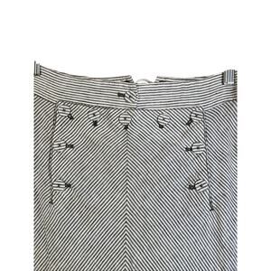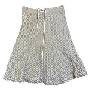 J Crew Sailor Button Midi Skirt Size 0 Brown Stripe Linen Lace Up Coastal Beach