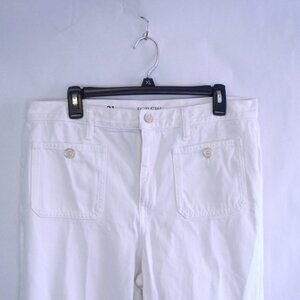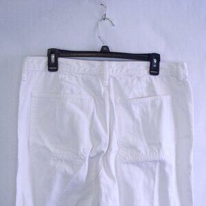 ~ White, patch pockets, Button / zipper fly, Raw hem