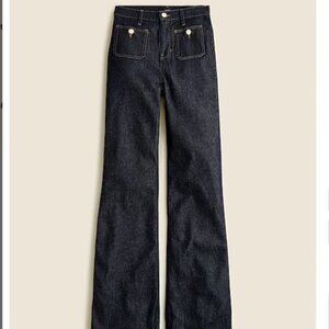 J.Crew Sailor Denim Trouser – Resin Rinse, Size 25 Channel timeless style with these J.Crew Sailor denim trousers in the rich Resin Rinse wash. Featuring a flattering high-rise fit, polished patch pockets, and signature J.Crew crest buttons, these trousers blend vintage charm with modern tailoring. Crafted from a sustainable blend of TENCEL™ lyocell, recycled cotton, and a touch of stretch, they offer comfort and structure in equal measure.