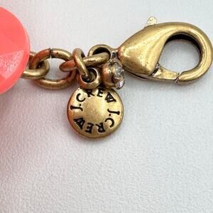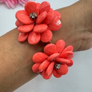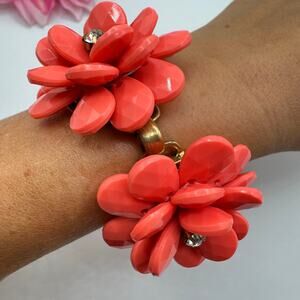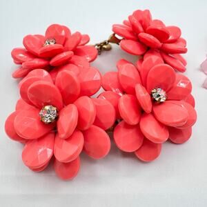 J. Crew Salmon Color Chunky Flower Bracelet Statement Signed Rhinestone Brass