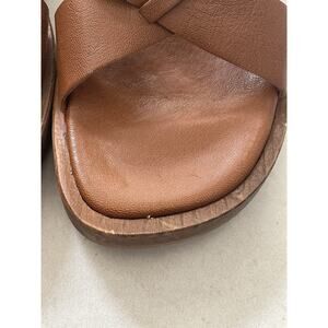 J. Crew Sandals Flats Shoes Thongs Leather Wooden Brown FLAW