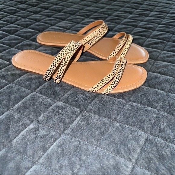 J. Crew Sandals Women 8 Tan Calf Hair Animal Print open toe Shoe