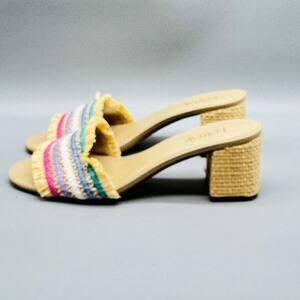 J Crew Sandals Womens 8.5 Beige Woven Slide Open Toe Block Heel Raffia Fringe
