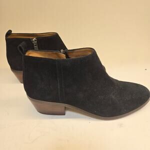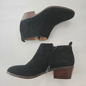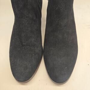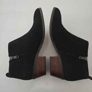 J. Crew Sawyer Minimalist Black Suede Leather Wood Stacked Heel Ankle Boot, Sz 7