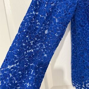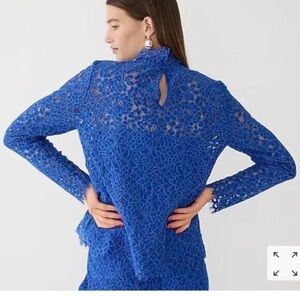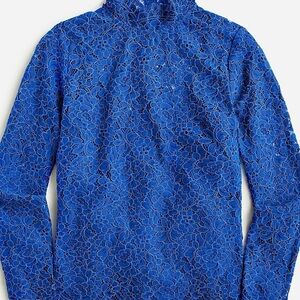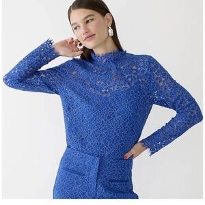 J. Crew Scalloped Lace Mockneck Top Floral Long Sleeve Blouse Cobalt Size 4