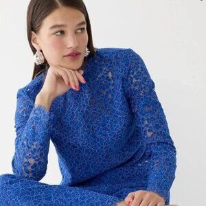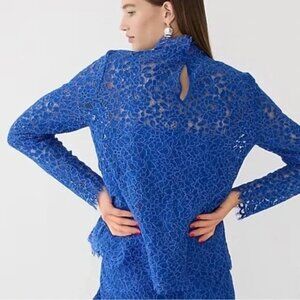 J. Crew Scalloped Lace Mockneck Top in Royal Blue Size 4 NWT