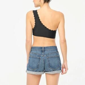 J. Crew Scalloped One Shoulder Swim Bikini Top Black NWT Size Medium