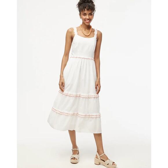 J Crew Scalloped Trim Sleeveless Flowy Midi Dress