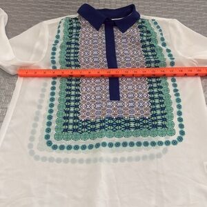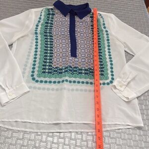 J Crew Scarf Bandana Print White Henley Blouse Size M