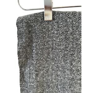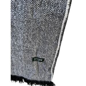 J Crew black & white Herringbone Print Scarf with eyelash fringe. Good preowned condition, materials tag removed - not sure of the composition, very soft, maybe a wool/cashmere blend