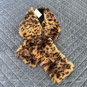 J. Crew Scarf Leopard Animal Print Faux Fur Brown Black Neck Wrap Warmer